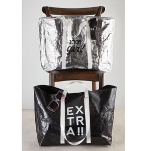 100% That Girl Large Silver Wrinkle Carry All Bag | Big Grocery Shopping Tote Bag