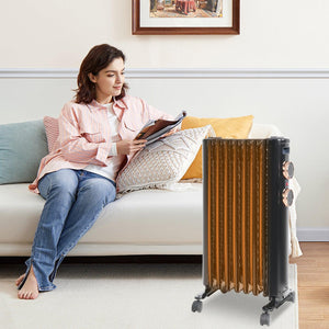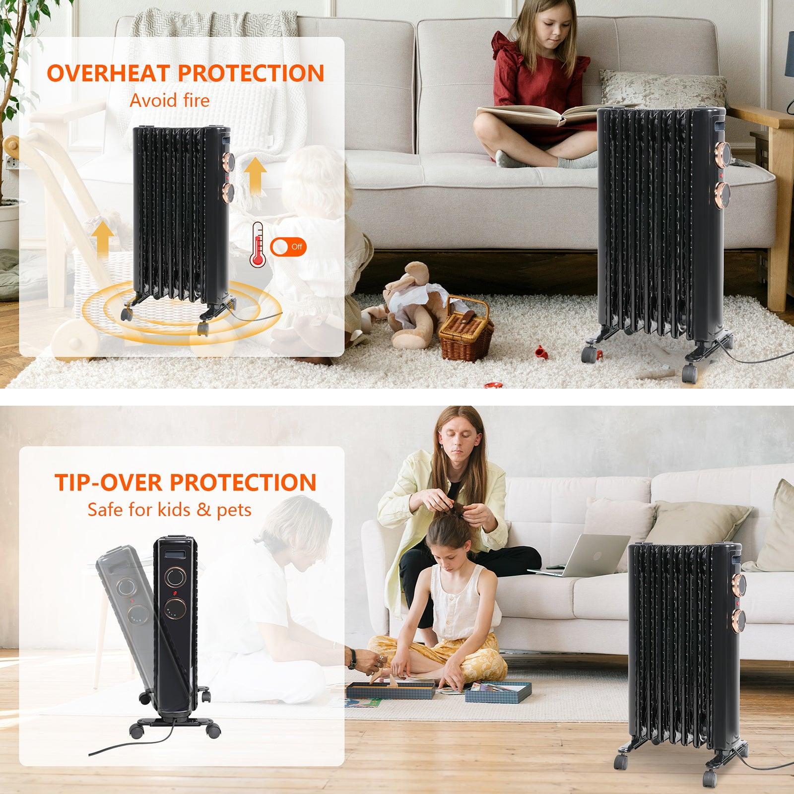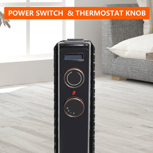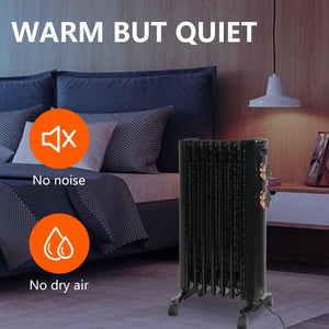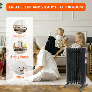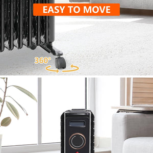1500W Portable Electric Radiator Oil Filled Heater With 3 Heating Modes, Adjustable Thermostat, Black