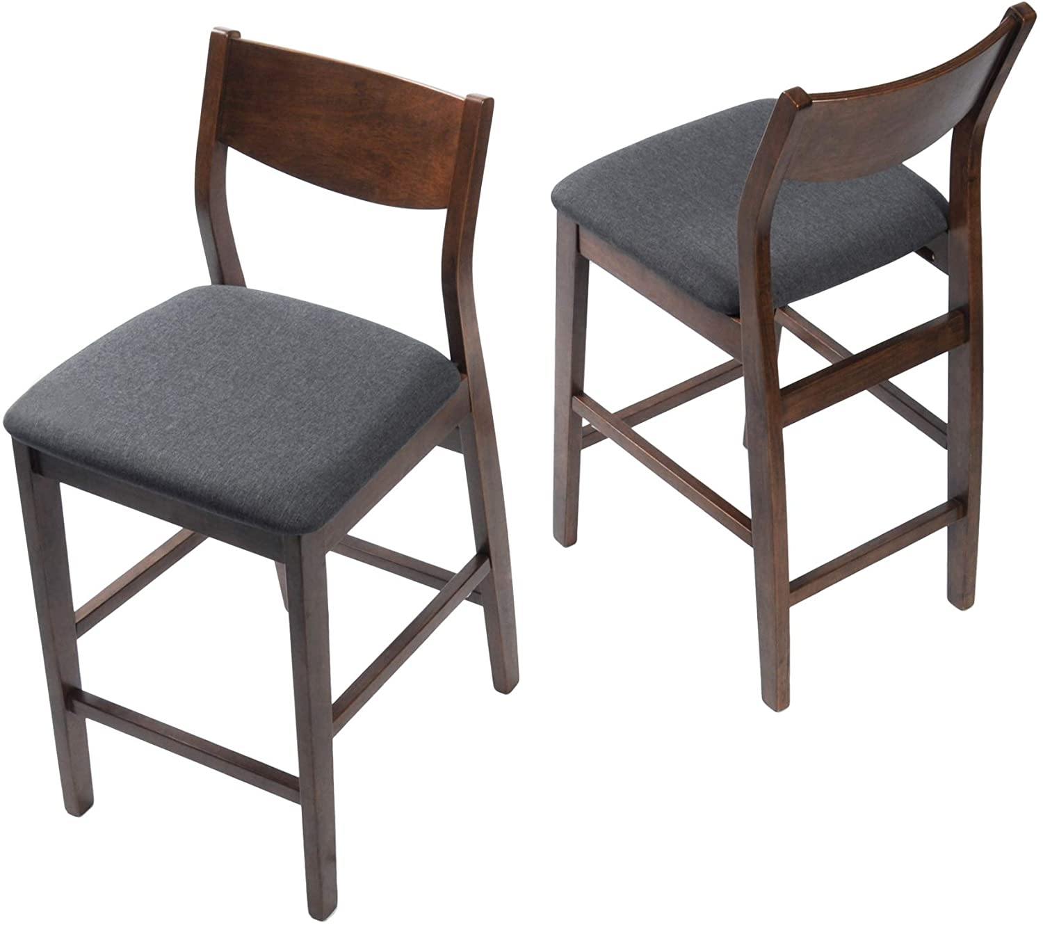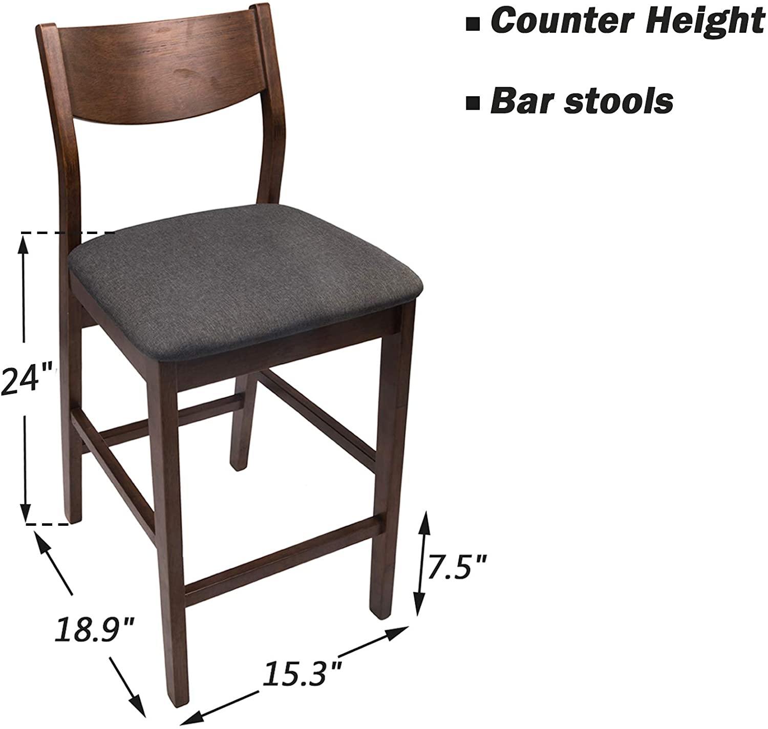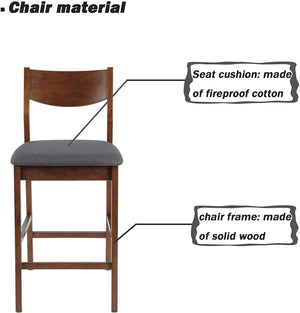24" Counter Height Chairs Set of 2 Upholstered Dining Chair Bar Stools, Solid Wood Leg, Soft Cushion, Pub Height, Ergonomics Back