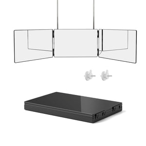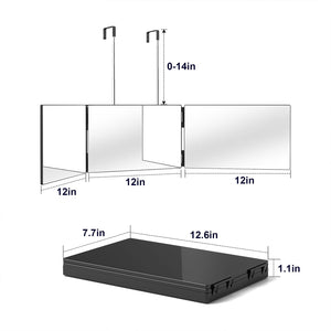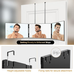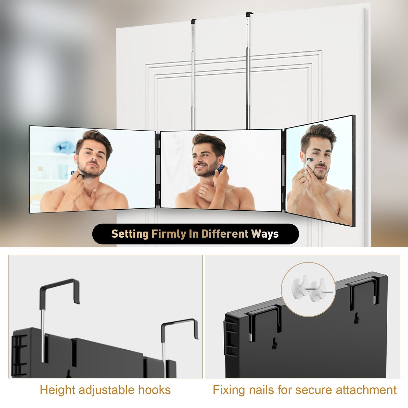 3 Way Mirror for Hair Cutting, 360 Degree Trifold Mirror with Height Adjustable Telescoping Hooks, Black