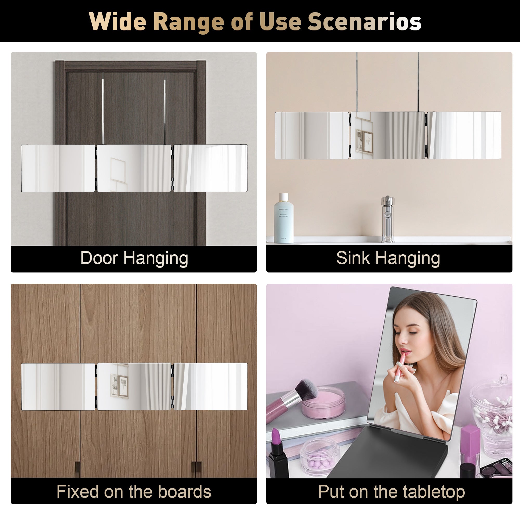 - Effortlessly view all angles of your head with this tri-fold mirror, allowing you to easily access challenging areas at the back for a flawless DIY haircut at home.