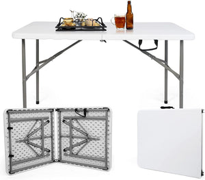 4FT Fold-in-Half Camping Table 48'' White Portable Folding Table w/Handle for Office, Picnic, Wedding