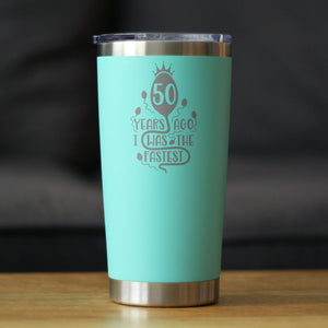 50 Years Ago I Was the Fastest - Insulated Coffee Tumbler Cup with Sliding Lid - Stainless Steel Insulated Mug - Funny 50th Birthday Gifts for Women and Men Turning 50