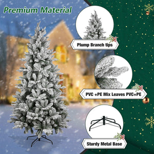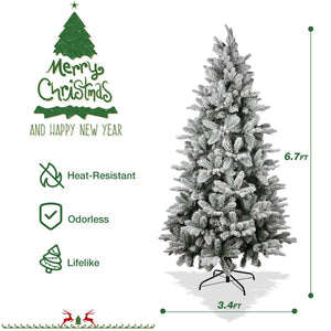 6.9' Artificial Christmas Pine Tree Snow Flocked Xmas Tree with 950 Branch Tips