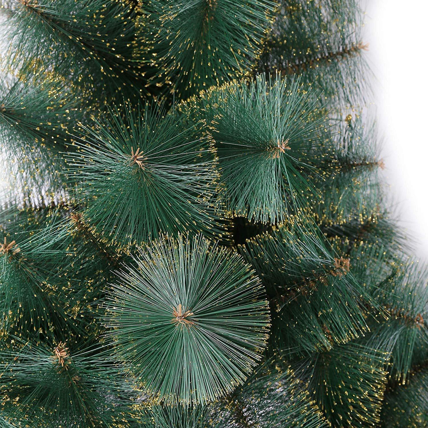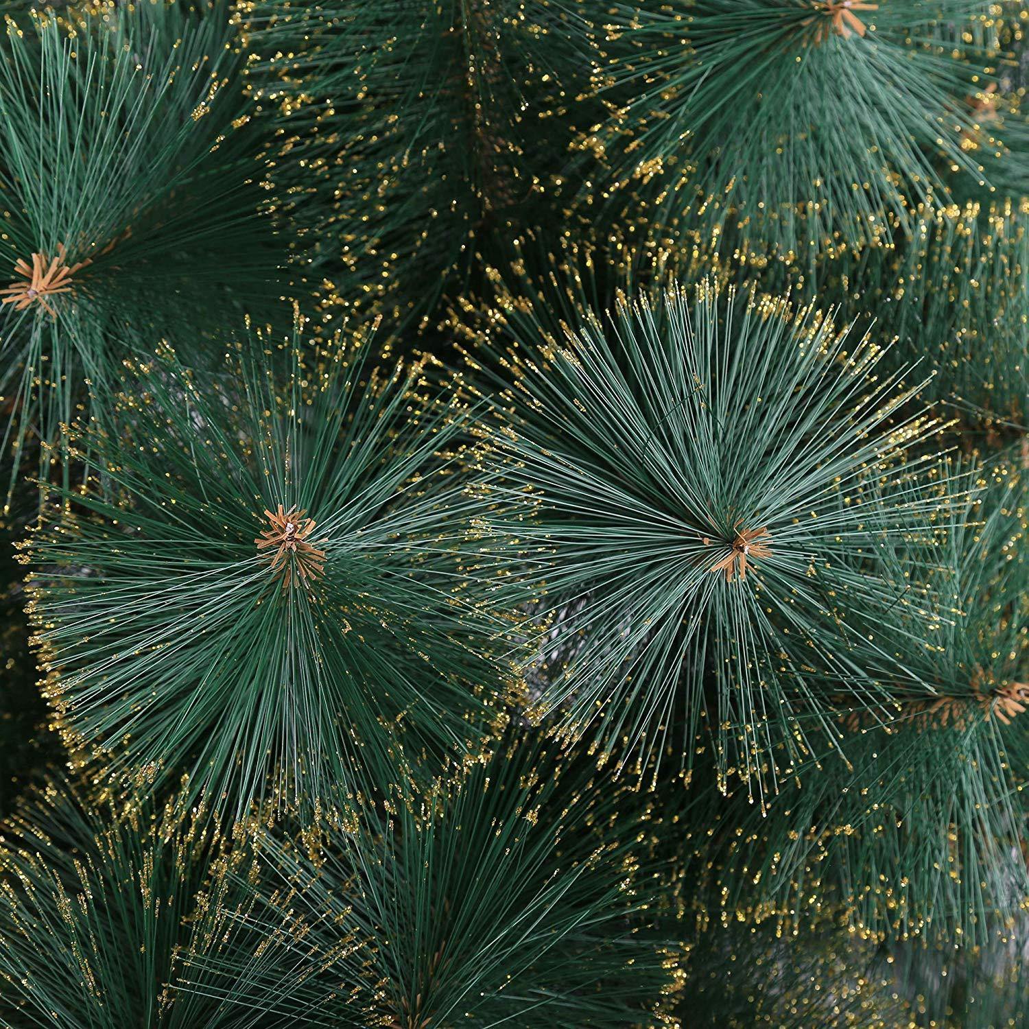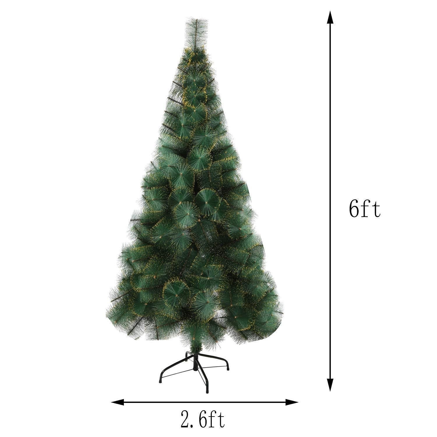 6' Classic Pine Needle Tree Encrypted Artificial Christmas Tree Natural Branch with Solid Metal Bracket, Coniferous with Golden Highlights