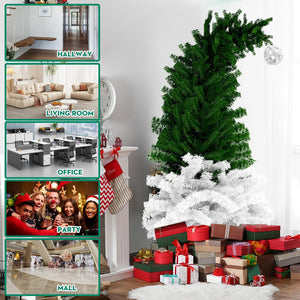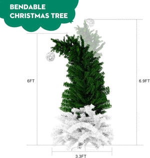 6ft Bendable Santa Hat Style Artificial Christmas Fir Tree Bent Top Xmas Tree with Metal Stand, 1050 Lush Branch Tips