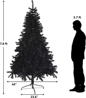 7.8' Premium Artificial Christmas Tree with Solid Metal Stand, Festive Indoor and Outdoor Decoration, Black