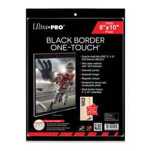 Ultra PRO's 8" x 10" Black Border ONE-TOUCH display features a black border to perfectly frame your photo. These premium storage cases are designed as the final destination for your collectible photo, artwork, signed autographs, and documents. The two-piece ONE-TOUCH holders are uniquely designed with slide-in hinges and dual magnetic closure so you'll never have to use a screwdriver again. The holder uses UV-blocking additives to protect your photo from harmful UV rays and is made with non-PVC materials to provide acid-free protection - ensuring your valuable hit retains its condition while under the display. This model can hold 8" x 10" photos, artwork, and other collectibles in our Ultra PRO 8" x 10" Soft Sleeves. (*photo not included)