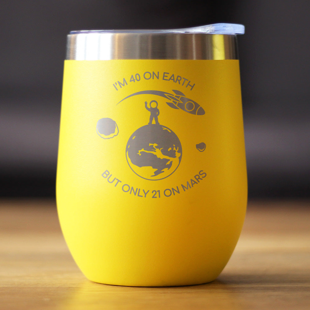 Age on Mars 40 - Wine Tumbler Cup with Sliding Lid - Stainless Steel Insulated Mug - Unique Funny 40th Birthday Gifts for Women and Men
