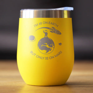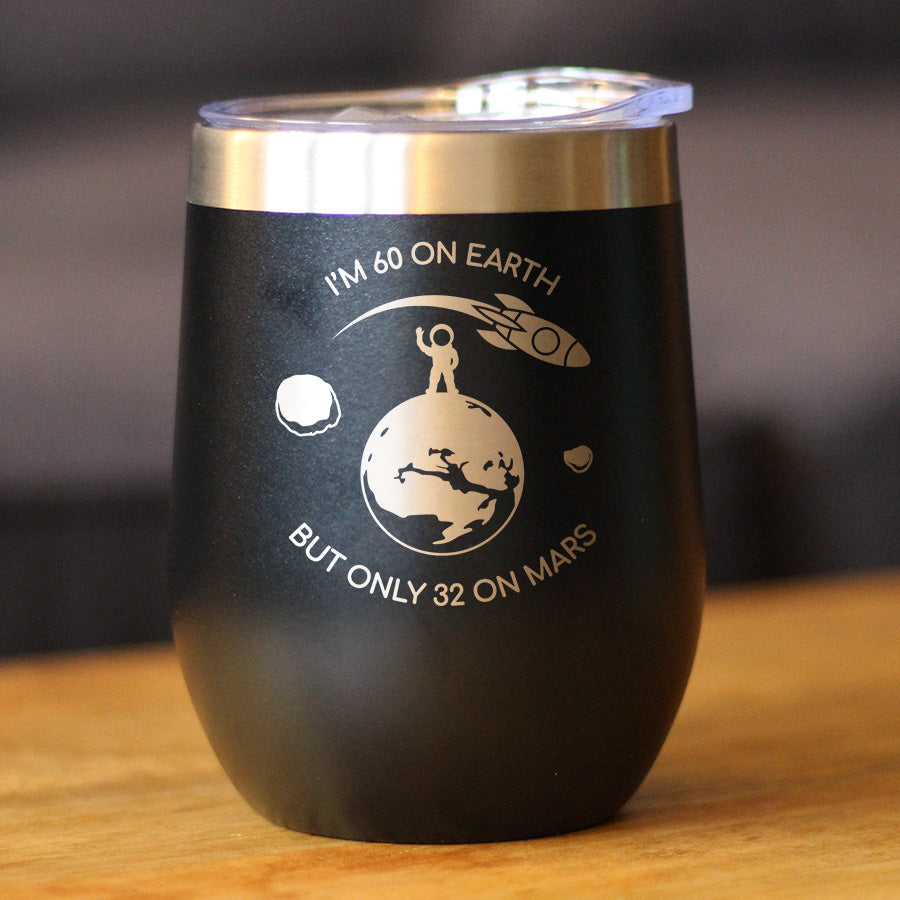 Age on Mars 60 - Wine Tumbler Cup with Sliding Lid - Stainless Steel Insulated Mug - Unique Funny 60th Birthday Gifts for Women and Men