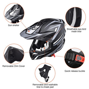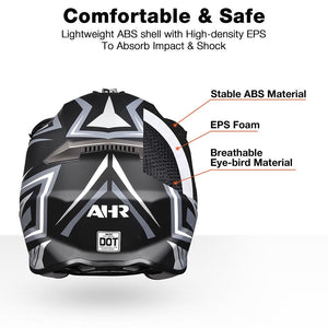 - AHR Offroad Full Face Helmet with a streamlined design and eye-catching lines delivers sports style
