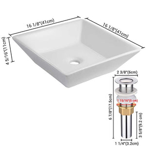 Aquaterior 16" Square Porcelain Bathroom Sink Vanity Vessel w/ Drain