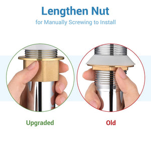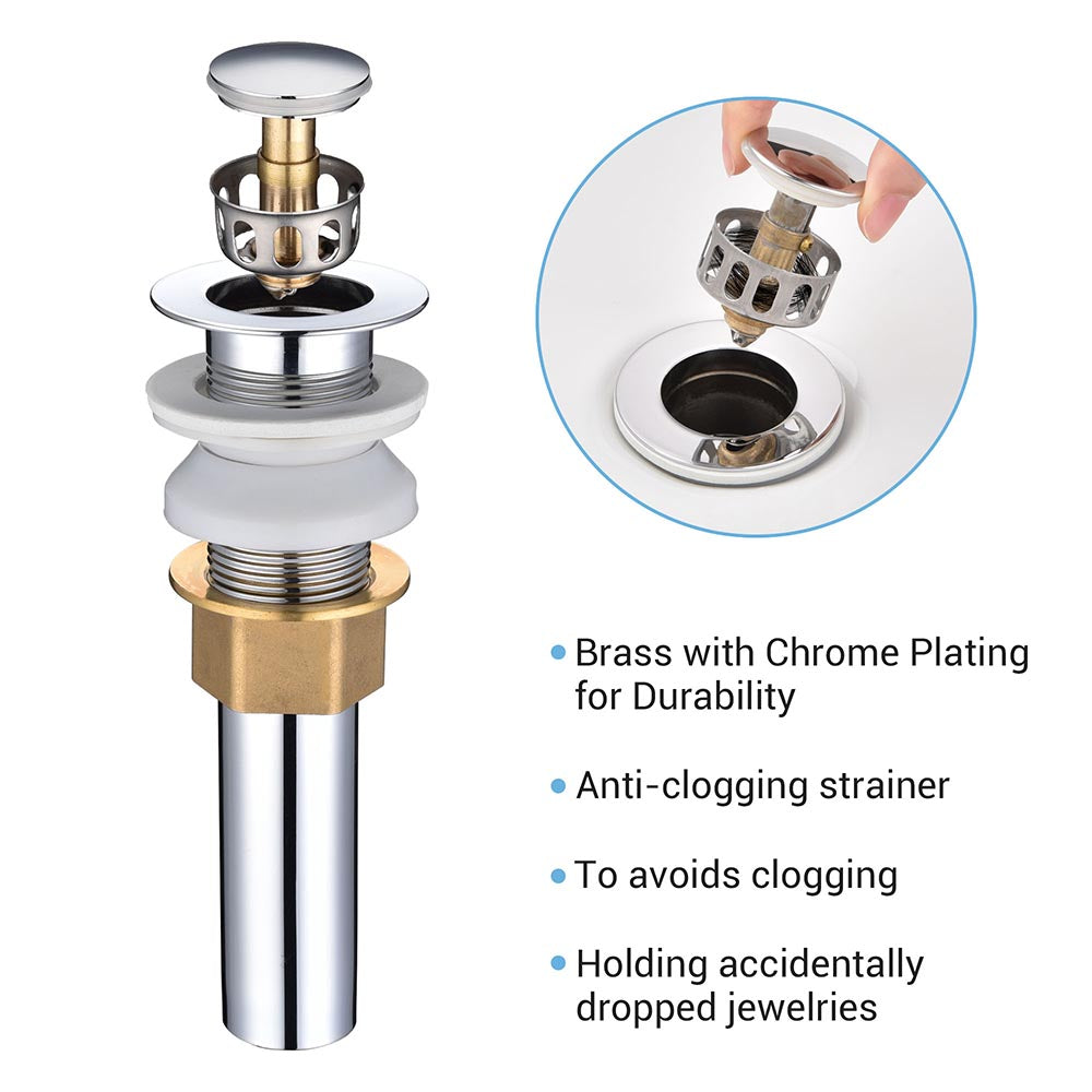 - Free of Leakage & Clogging - Comes with a free one-piece chromium alloy drain with a longer hex nut for easy manual screwing, and upgraded double gasket on the drain to prevent water leakage. Equipped with a sink strainer which captures waste and sediments, making cleaning easier and preventing the drain from clogging up