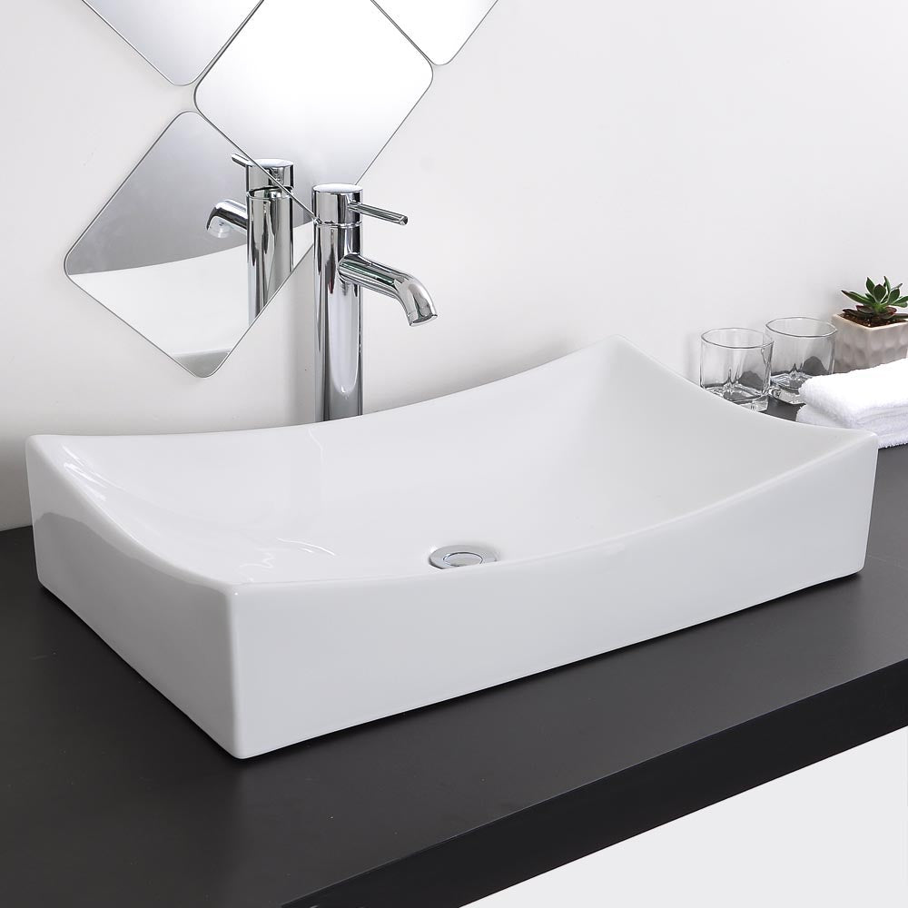XL 26 inch Rectangle Porcelain Vessel Sink with Pop Up Drain High Quality a simple style in true minimalist fashion, sleek and contemporary. For its counter-top installation, this basin will be a striking focal point to refresh your bathroom. It is esp. great for hotel, restaurant or other commercial use to show palatial of your place!
