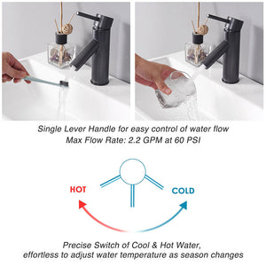 Aquaterior Bathroom Faucet Single Hole 1-Handle Cold Hot 7.5"H