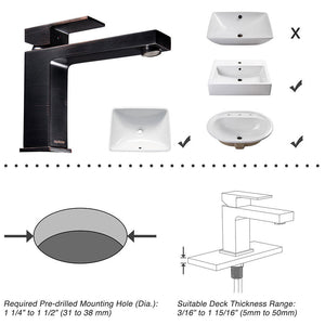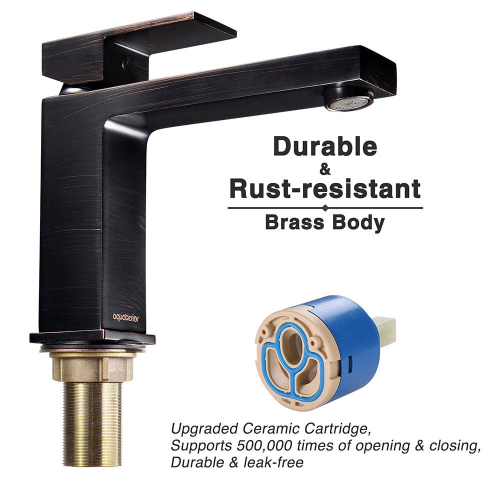 Aquaterior Bathroom Sink Faucet Square 1-Handle Cold & Hot