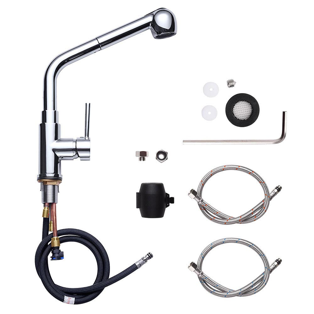 - Aquaterior Simple stainless steel pull-out kitchen faucet with 1 handle, long neck shape makes your kitchen clutter-free and elegant