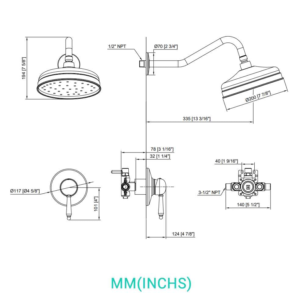 - Shower Head Size (Dia. x H): 7 7/8" x 3 13/16" (20 x 9.7 cm)