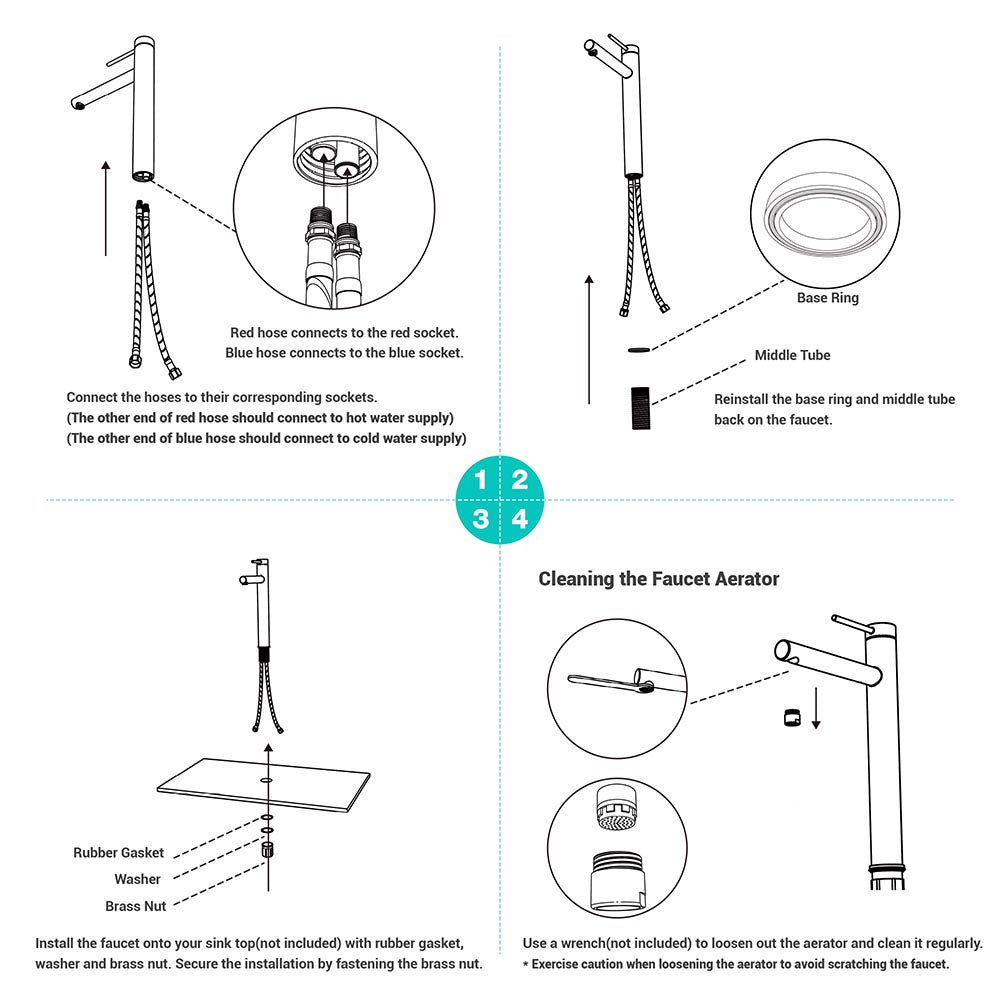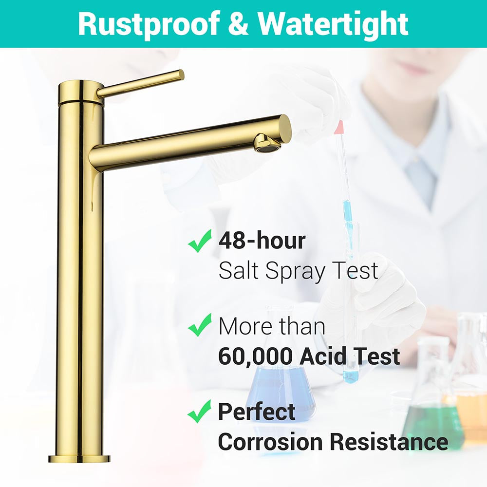 Aquaterior 13 inch Bathroom Vessel Sink Faucet Vanity Faucet, constructed by solid brass with excellent corrosion resistance, features lead-free material for water safety and single handle for easy adjustment of water flow and temperature, enhancing the overall style of your bathroom.
