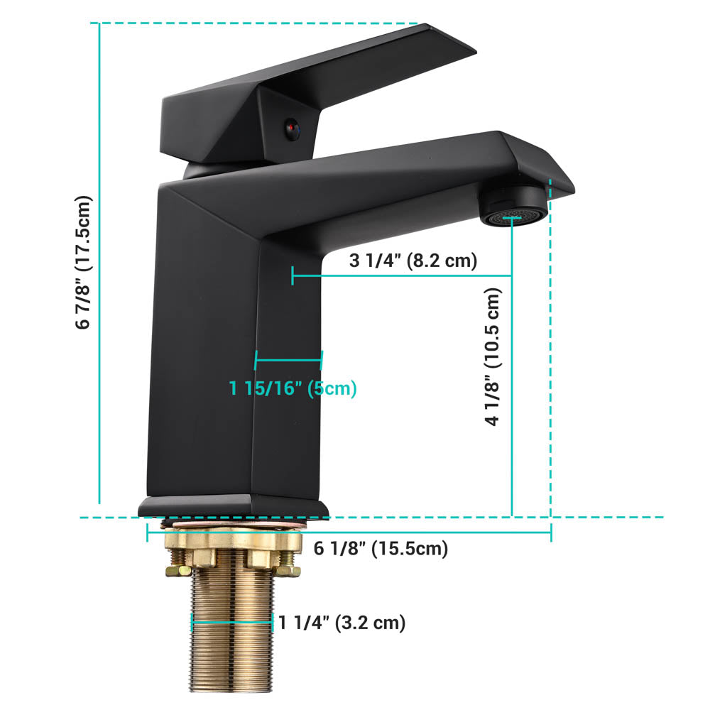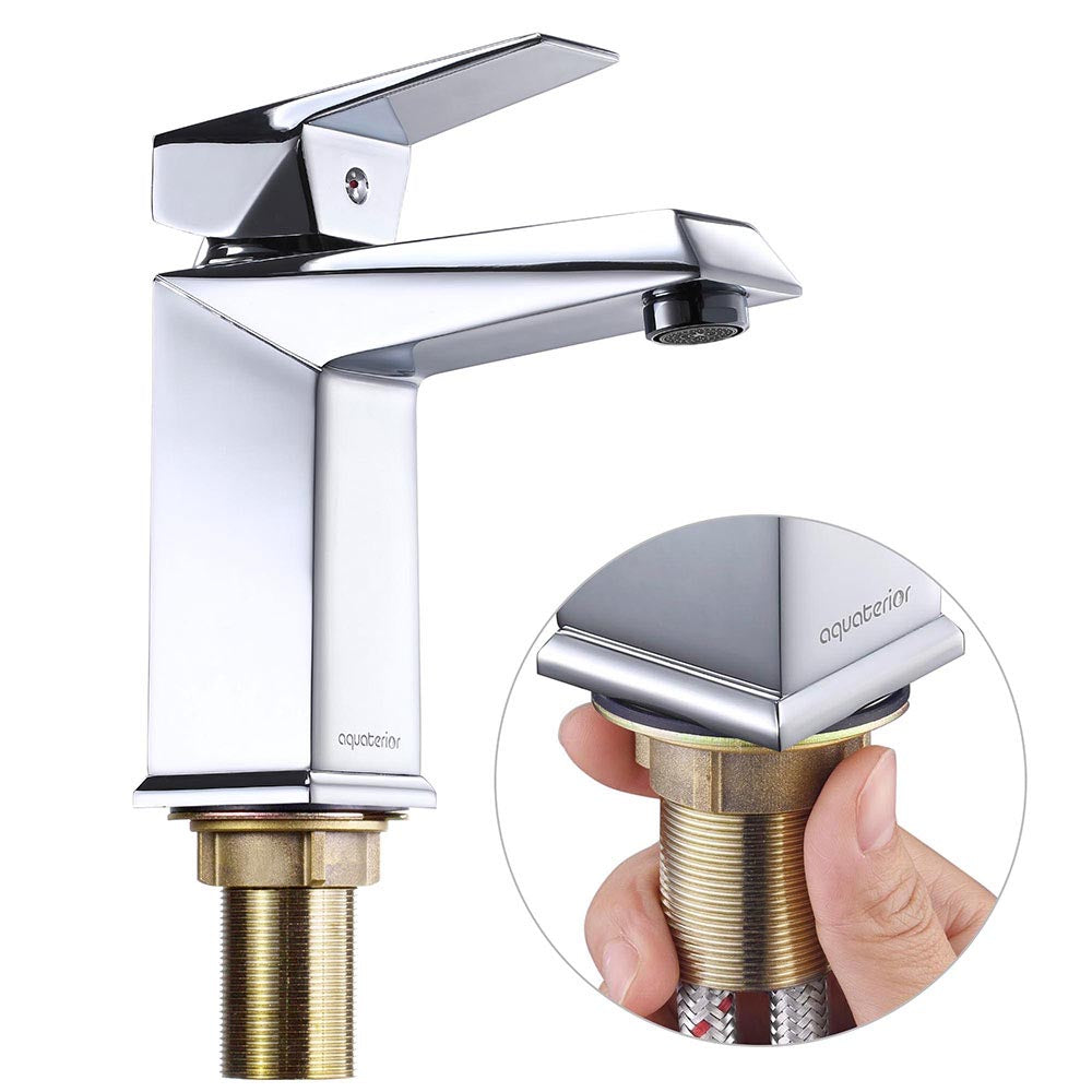 Take your bathroom to the next level with the Aquaterior Single Hole Square Faucet. Featuring a ceramic cartridge structure, this faucet effectively prevents leaking or dripping, while its solid brass construction offers supreme durability. With a single lever handle, easily adjust water flow and temperature. Perfect for hotels, spas, and restaurants.