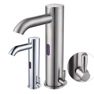 Touchless lavatory sink faucet is equipped with a 10" spout and features hot and cold water functions for maximum convenience. The sensor-activated and no-touch design helps reduce the spread of germs and bacteria, creating a more hygienic living space. Enjoy streamlined and hassle-free handwashing.