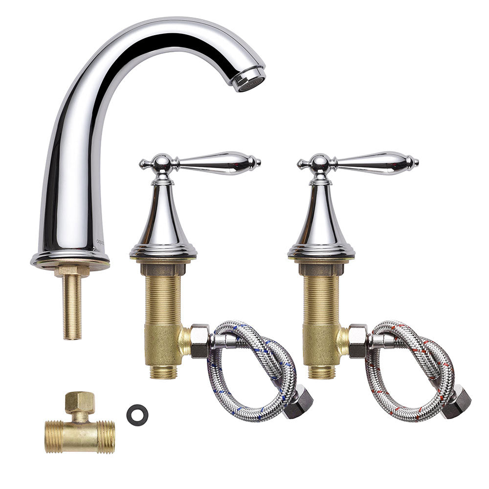 Aquaterior 3 hole bathroom faucet, matches different types of undermounted & wall mounted sink; stylish retro arch design makes your bathroom look vintage. Fast & Tool free Installation - Special square nut for quickly installation, can DIY within minutes and without tools