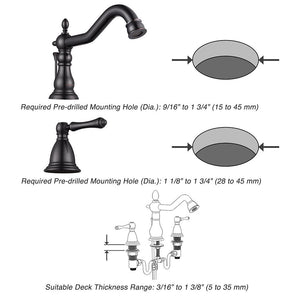 - Aquaterior® 3 hole bathroom faucet, matches different types of undermount & wall mounted sink; vintage long spout design fits for larger sink and makes your bathroom classical