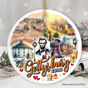Artistic Historical Gettysburg Town Vintage Ornament, Pennsylvania Battlefield Civil War Heritage and Abe Lincoln