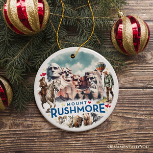 Artistic Watercolor Mount Rushmore Historical Ceramic Ornament, South Dakota Christmas Gift