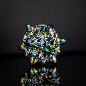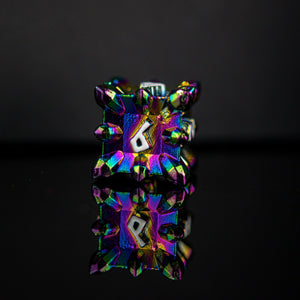 Our metal dice sets are all cast from zinc alloy metal to assure better balanced rolls. This set is perfect for any RPG and will be sure to impress at your upcoming session! Every set comes with its own metal dice tin for easy storage and a winning presentation.
