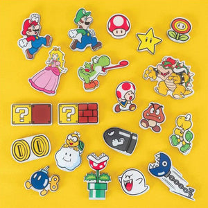 Fan favorite characters from Super Mario games are now available as die cut shaped acrylic magnets. Each comes in a blind purchase bag with a mini note paper. There are 20 different characters and 10 variations of note paper. Comes in a PDQ containing 14 bags. Character line up: Mario, Luigi, Peach, Yoshi, Todd, Super Mushroom, Fire Flower, Super Star, Bock A, Block B, Coins, Bowser, Goomba, Koopa, Lakitu, Piranha Flower, Boo, Bullet Bill, Bob-omb and Chain Chomp