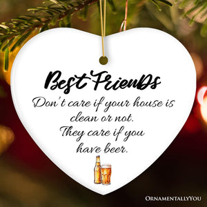 When it comes to best friends, cleanliness is overrated what really matters is if you’ve got beer in the fridge! This humorous ornament is the perfect gift for the friend who’s always down for a drink and doesn’t care about the mess. It’s a fun way to celebrate the kind of friendship that’s built on good times, laughter, and cold drinks. Cheers to that! 🍻
