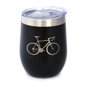 Bicycle - Wine Tumbler Glass with Sliding Lid - Stainless Steel Insulated Mug - Unique Road Biking Themed Decor and Gifts for Cyclists