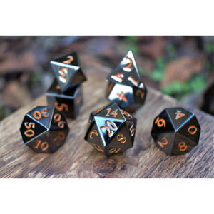 Our metal dice sets are all cast from zinc alloy metal to assure better balanced rolls. This set is perfect for any RPG and will be sure to impress at your upcoming session! Every set comes with its own metal dice tin for easy storage and a winning presentation.