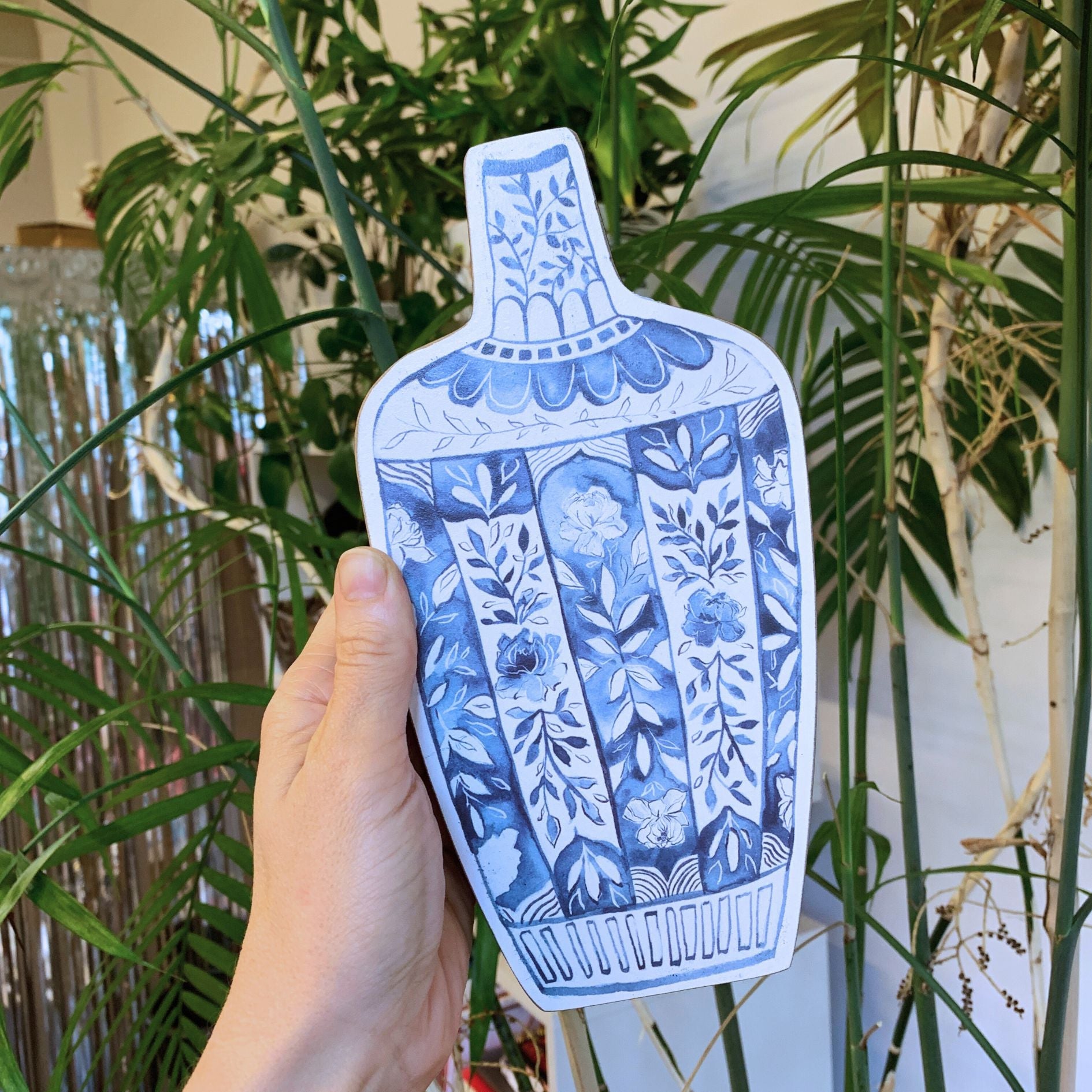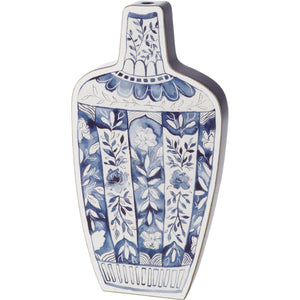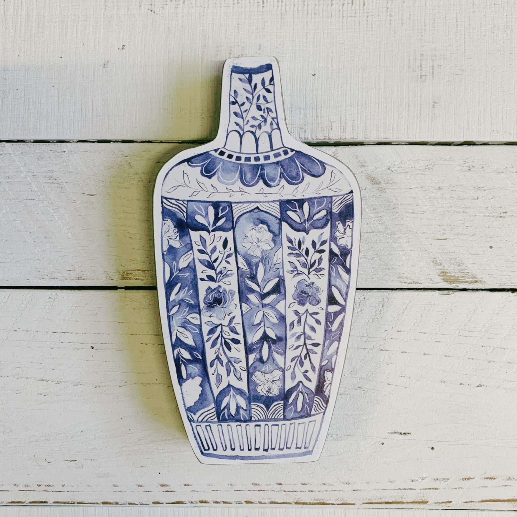 Blue Jar 2D Vase Shaped Wood Decor | Hand Painted Floral Designs | Decorative Wooden Ancient Vase Stander