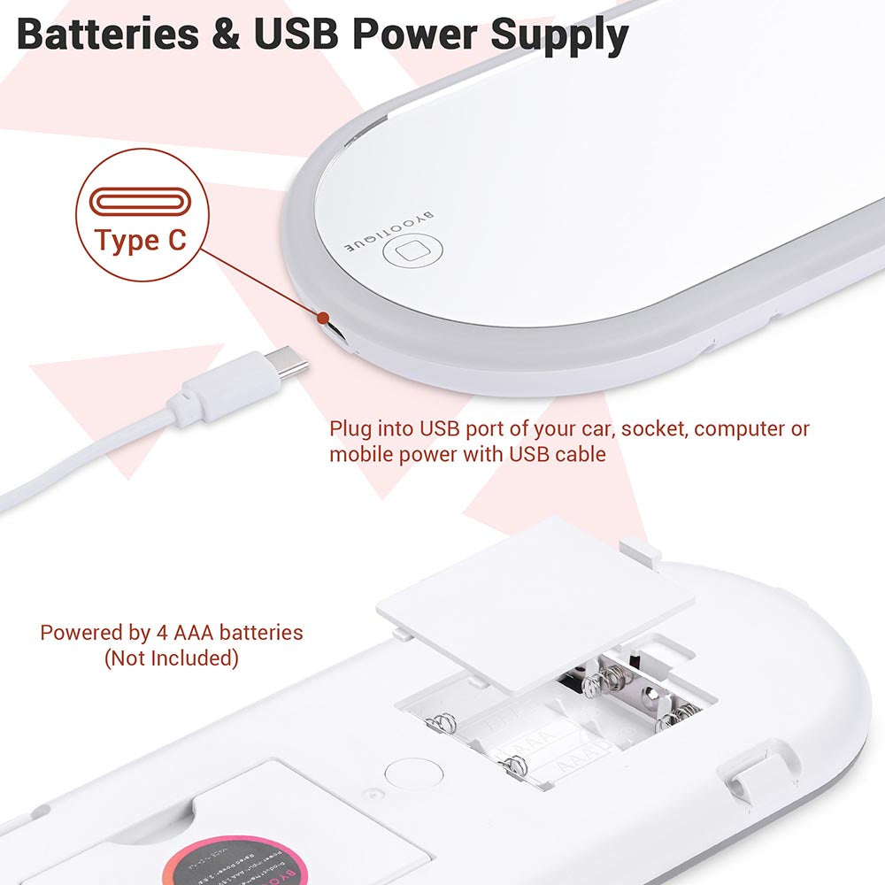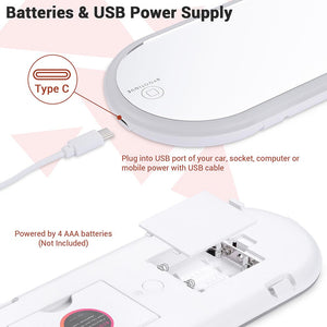 -3X magnifying rounded mirror allows you to create exquisite makeup by clearly checking details in different parts - 6500K energy saving LED light with 37 pcs light beads provides bright & soft light even in dark environment