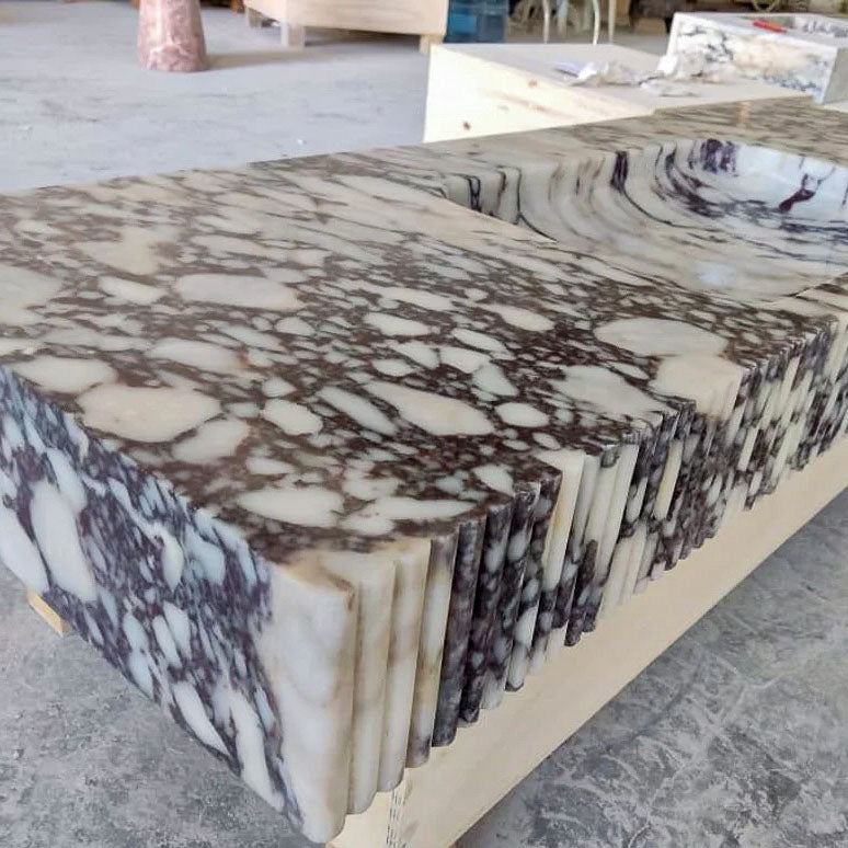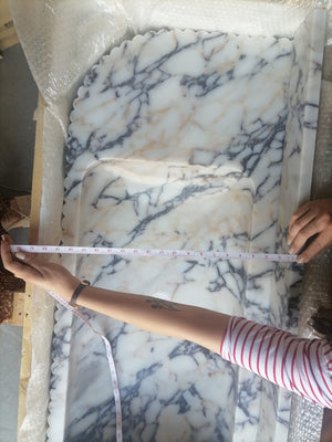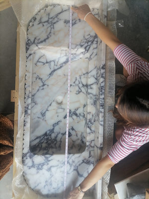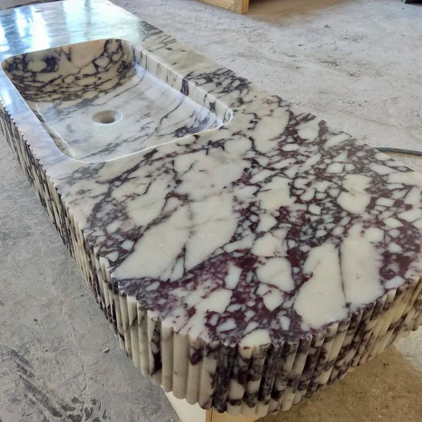 Calacatta Viola Marble Wall-mount Bathroom Vanity carved from Solid Block (W)20" (L)52" (H)6" is handcrafted in Turkey.