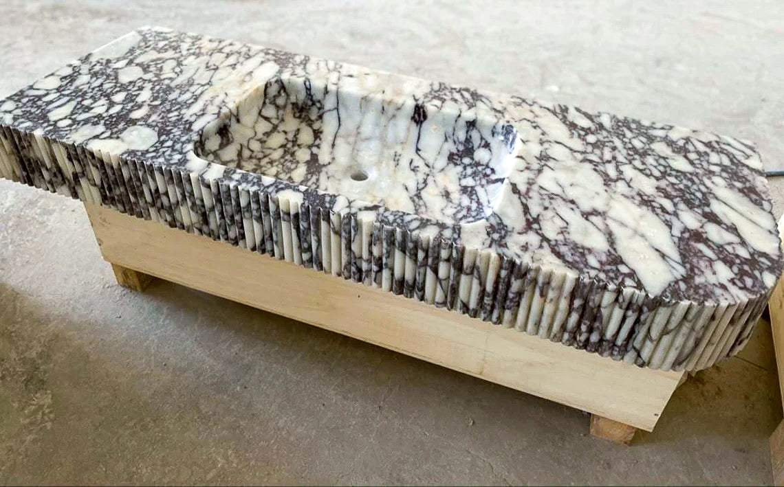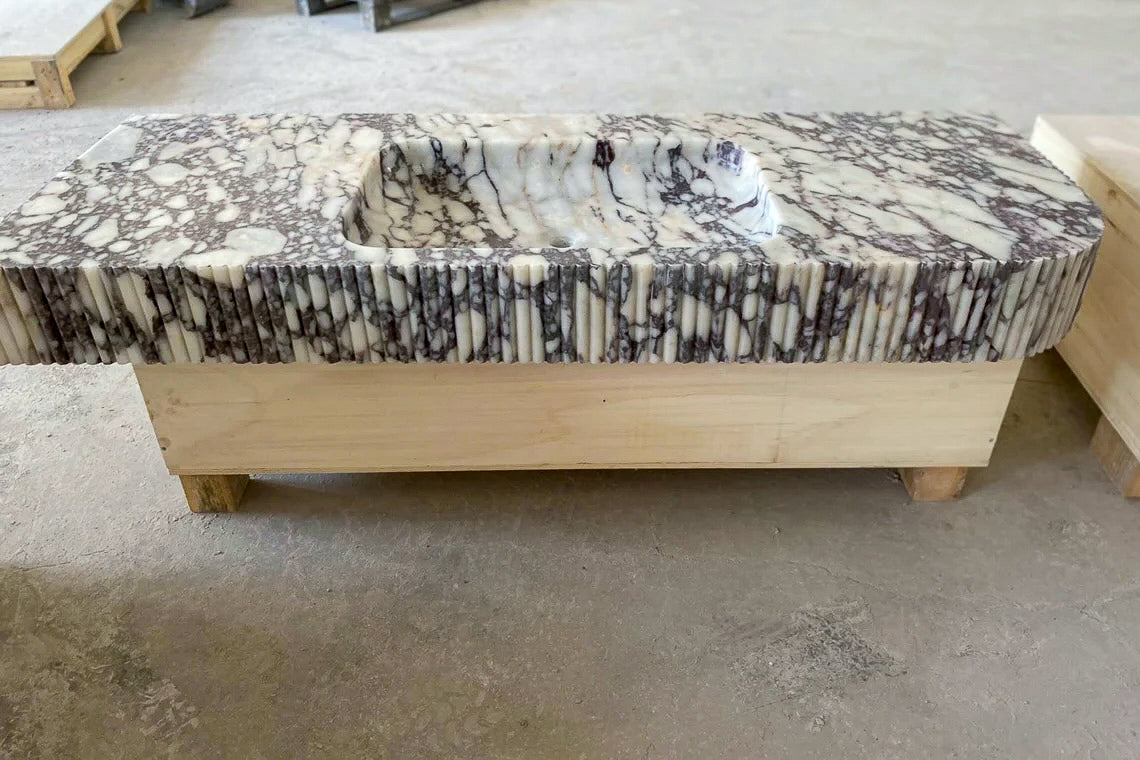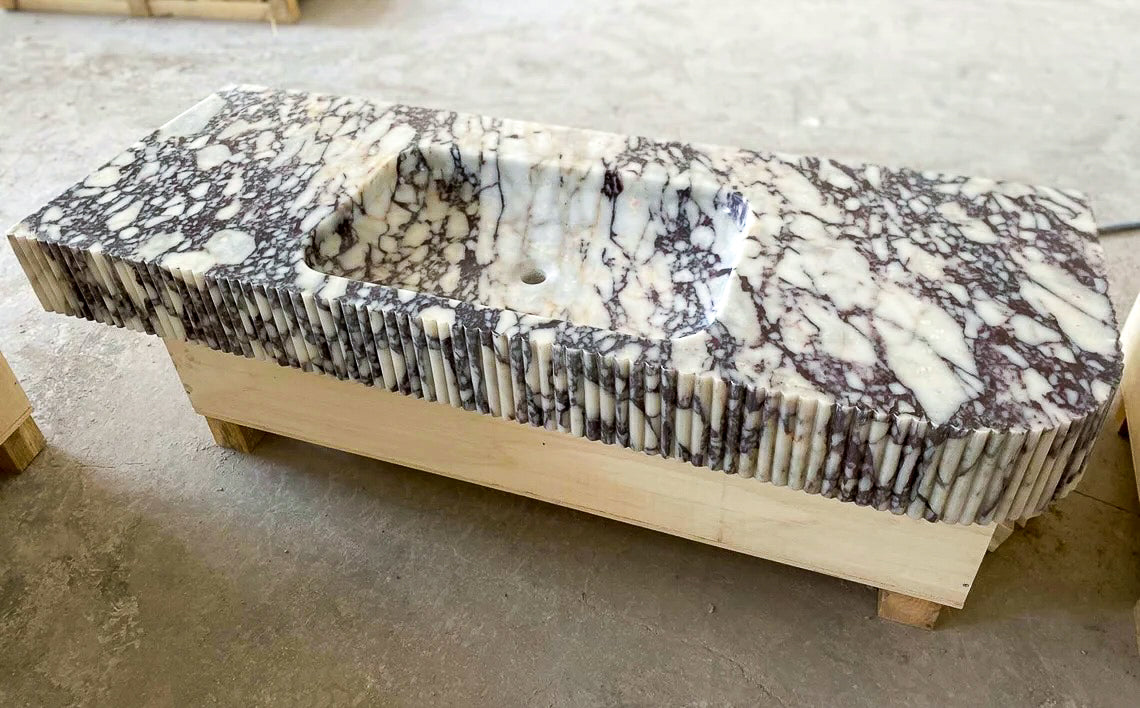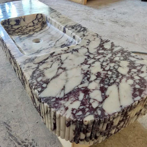 Calacatta Viola Marble Wall-mount Bathroom Vanity carved from Solid Block (W)20" (L)52"