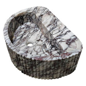 Calacatta Viola Marble Wall-Mount Fluted Half-Round Bathroom Sink (W)16" (L)24" (H)8"