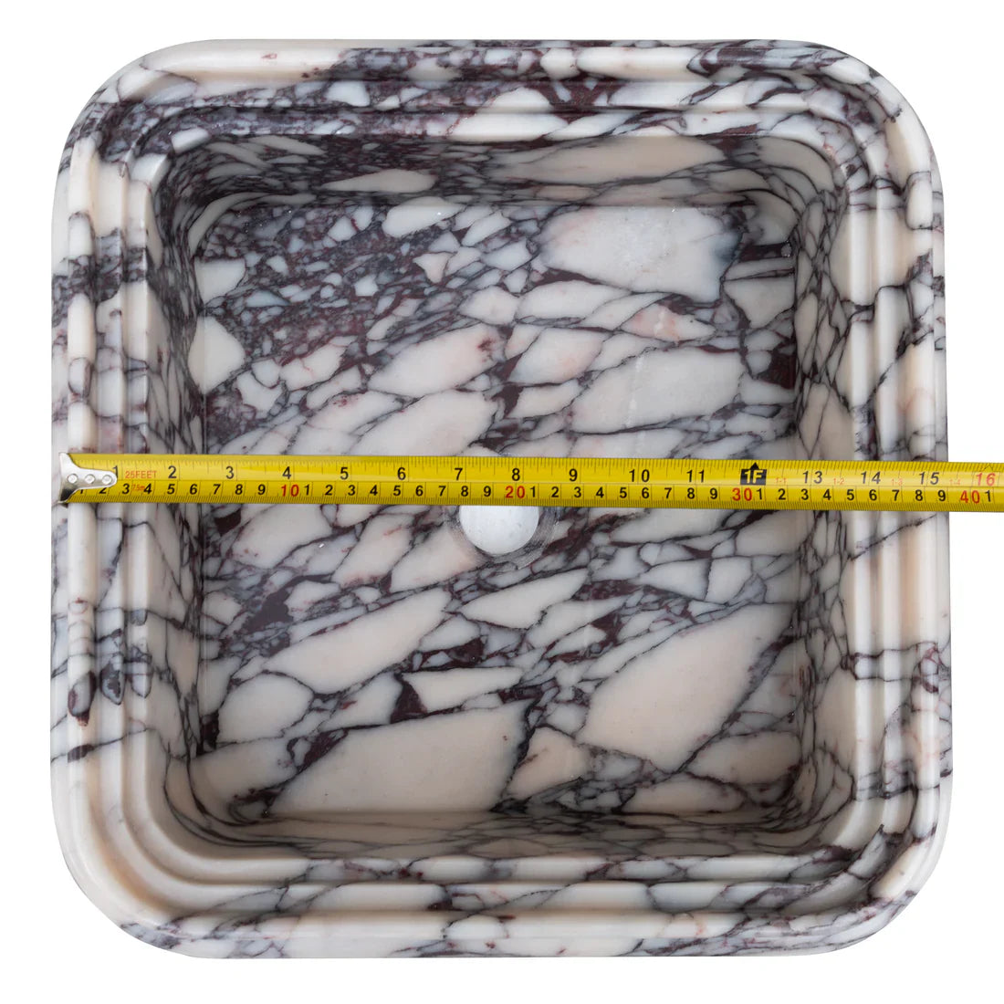 Calacatta Viola Marble Wall-Mount Square Fluted Bathroom Sink (W)16" (L)16" (H)6"