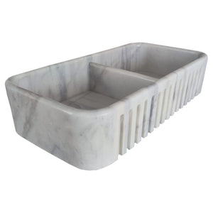 Carrara White Marble Farmhouse Apron Kitchen Double Sink (W)18" (L)36" (H)8"