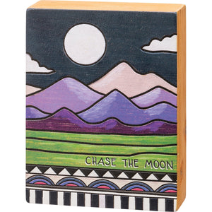Chase The Moon Wooden Box Sign | Wall Desk Office Home Decor | 6" x 8"