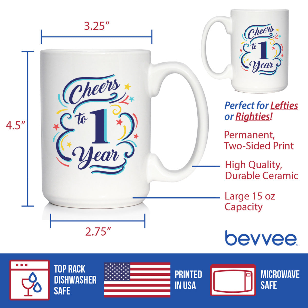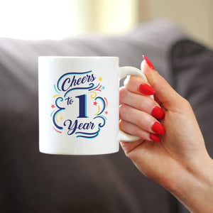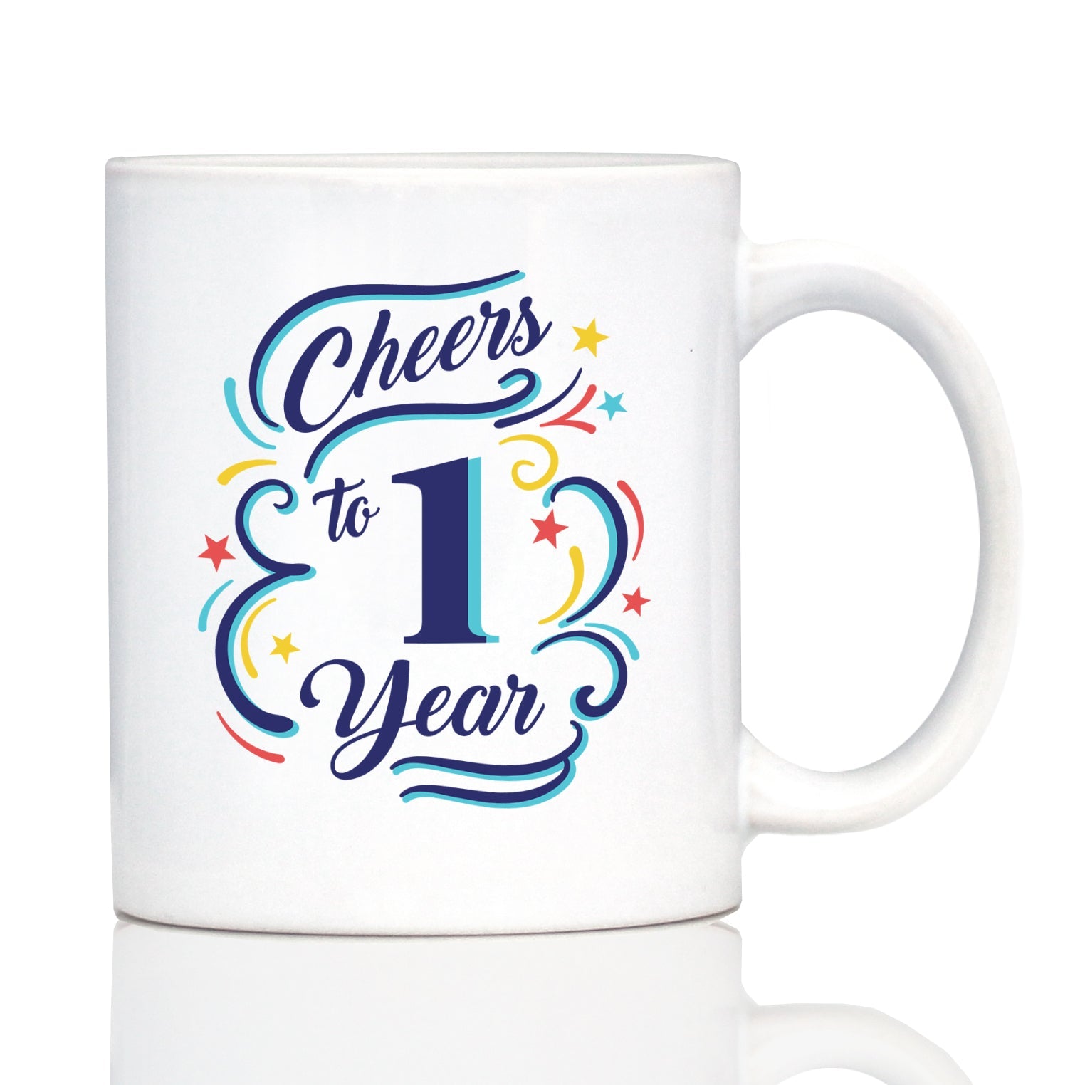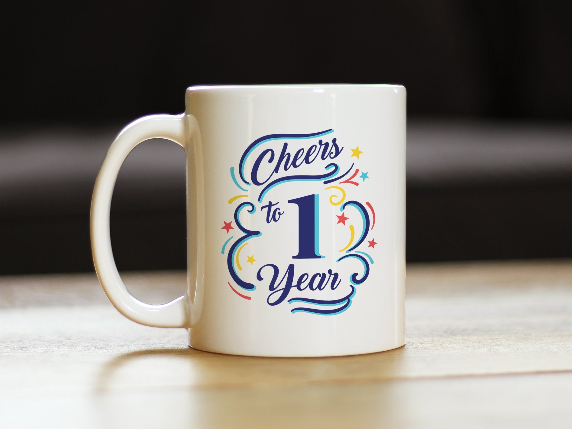 Cheers to 1 Year - Coffee Mug Gifts for Women & Men - 1st Anniversary Party Decor