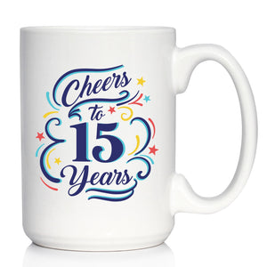 Cheers to 15 Years - Coffee Mug Gifts for Women & Men - 15th Anniversary Party Decor