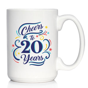 Cheers to 20 Years - Coffee Mug Gifts for Women & Men - 20th Anniversary Party Decor