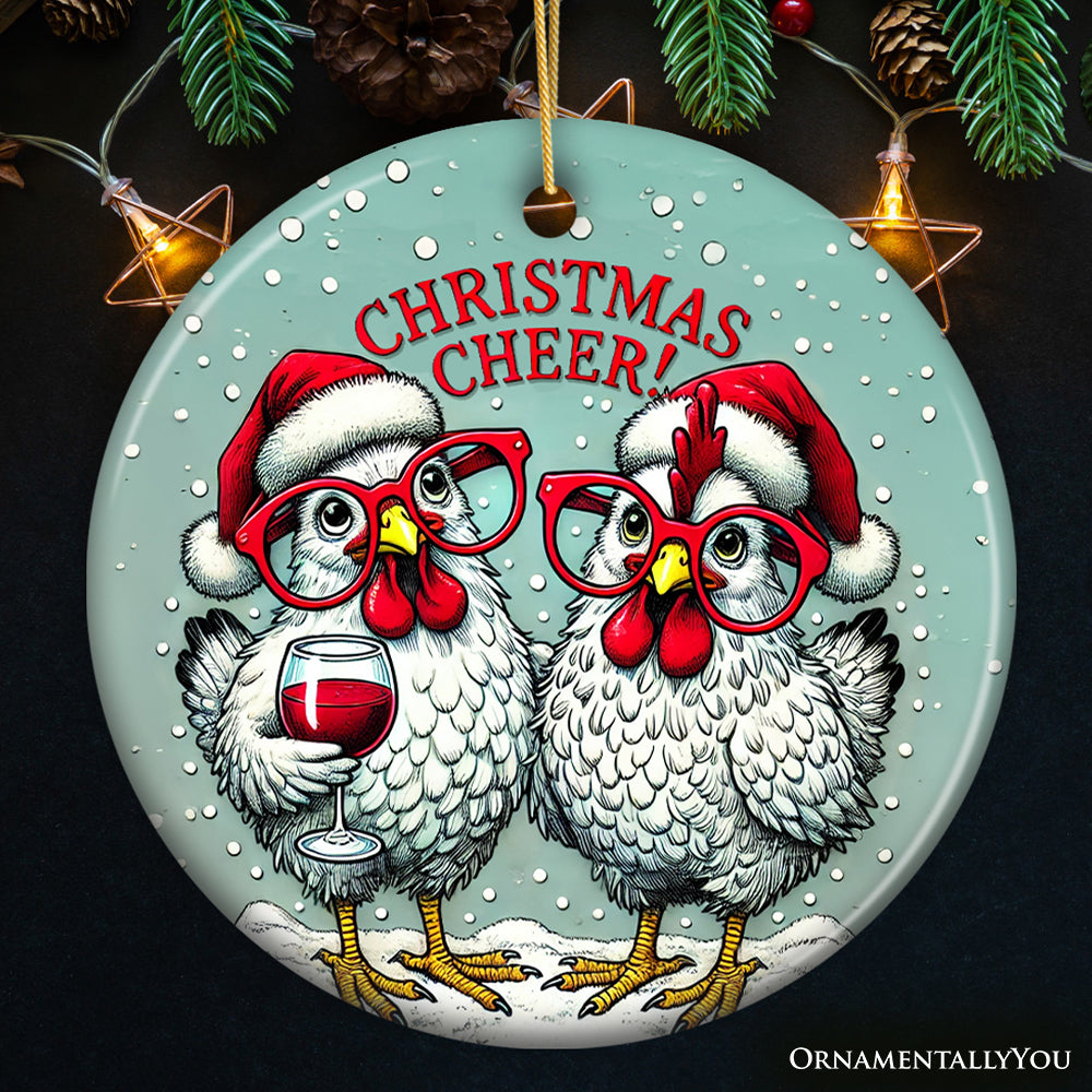 Christmas Cheer Chicken Ornament, Whimsical Holiday Tree Decoration