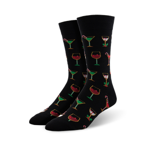 Get ready to jingle your toes and toast the most wonderful time of the year with our Christmas Cocktails crew socks! These festive socks are the perfect way to add some holiday cheer to your wardrobe. They're adorned with a jolly pattern of martini glasses, wine glasses filled to the brim, candy canes, and holly. Whether you're lounging by the tree or partying it up at your next holiday gathering, these socks will keep your feet merry and bright. And don't be surprised if you find yourself breaking out into a chorus of Christmas carols while you're wearing them they're that jolly! So raise a glass and let the festive vibes flow, one sock at a time!