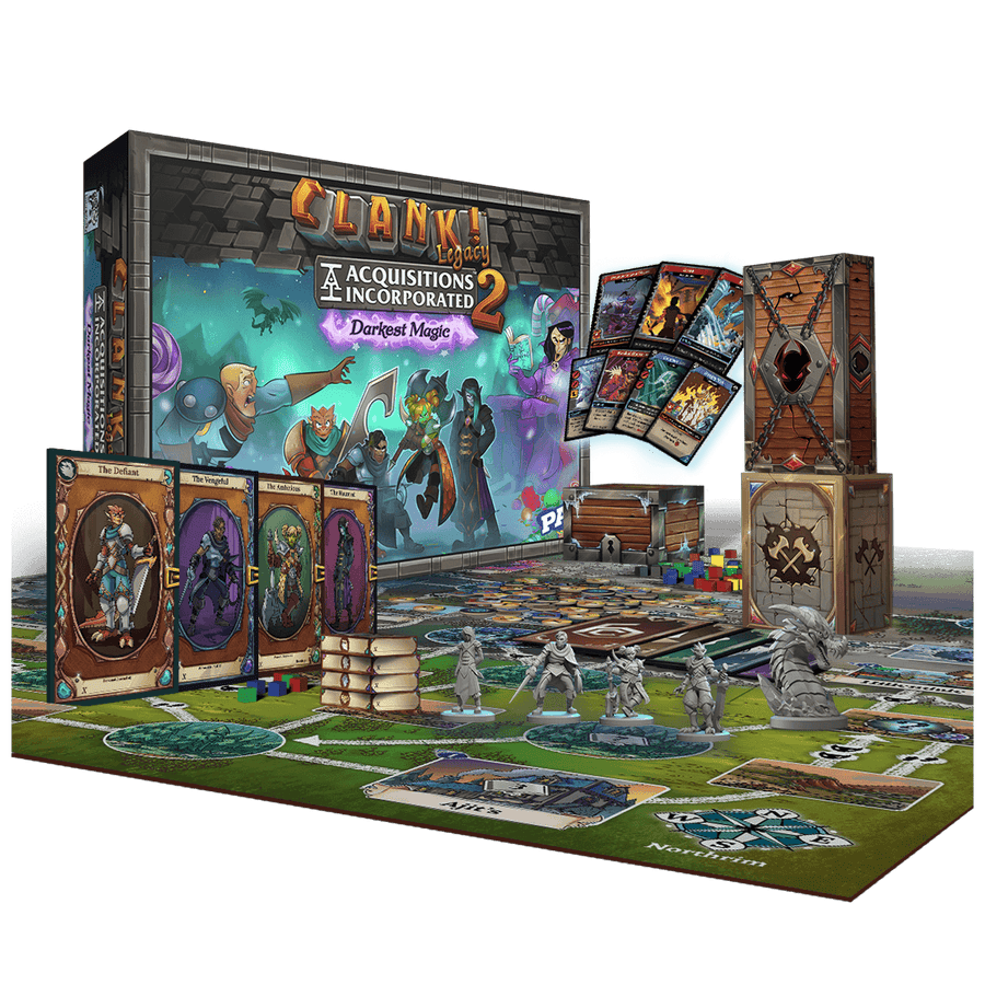 Hailed as one of the best legacy games of all time, the original Clank! Legacy took players on a whirlwind adventure that combined deck-building strategy, the beloved push-your-luck bag draw of Clank!, and an unforgettable over-the-top story.  Recapture the magic with Clank! Legacy 2: Acquisitions Incorporated - Darkest Magic for the biggest, best, clankiest Clank! yet!