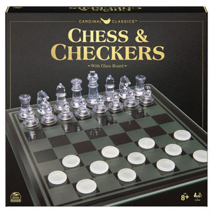 CLASSY DESIGN: Frosted and clear chess pieces with glass gameboard
