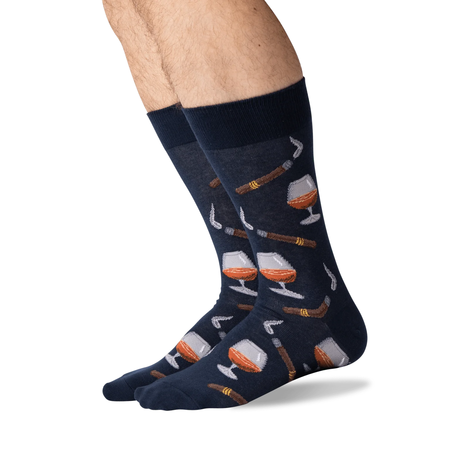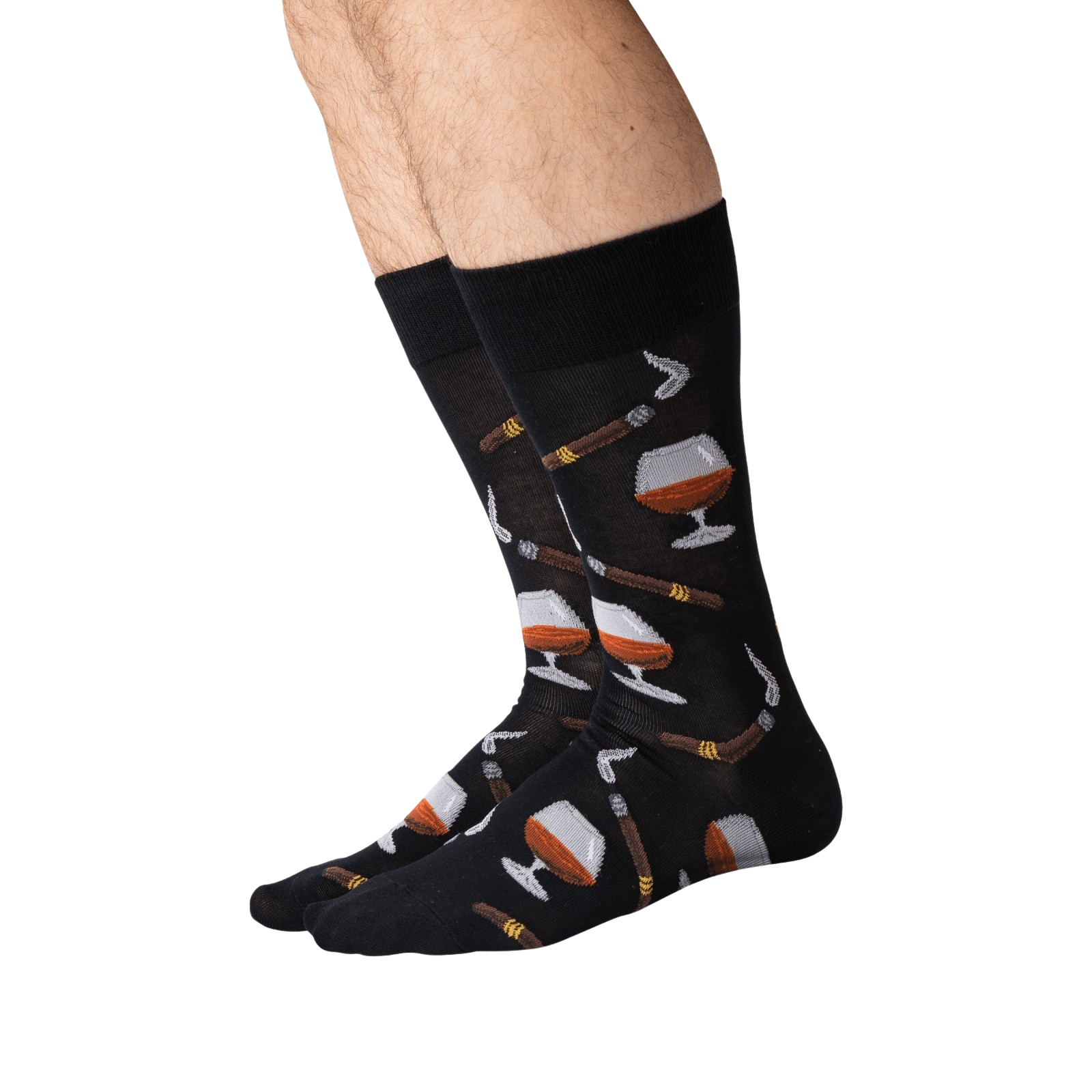 A real gentleman understands the finer things in life, but he can still appreciate the earthly pleasures too. A puff from a high-quality cigar, a sip of a smooth spirit, and a stylish pair of socks is a classic pairing fit for any occasion. Whether it's fine dining or lounge chair napping, these cool novelty socks will show off your sophisticated taste. Next time you paint the town red, do it in style with these unique socks.